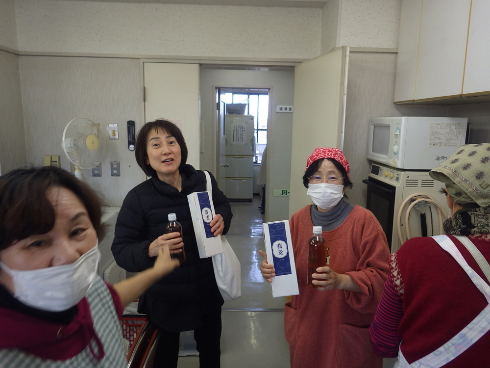 羽衣町にある手打ちそば屋さんがお蕎麦とそばつゆを持ってきてくれました。