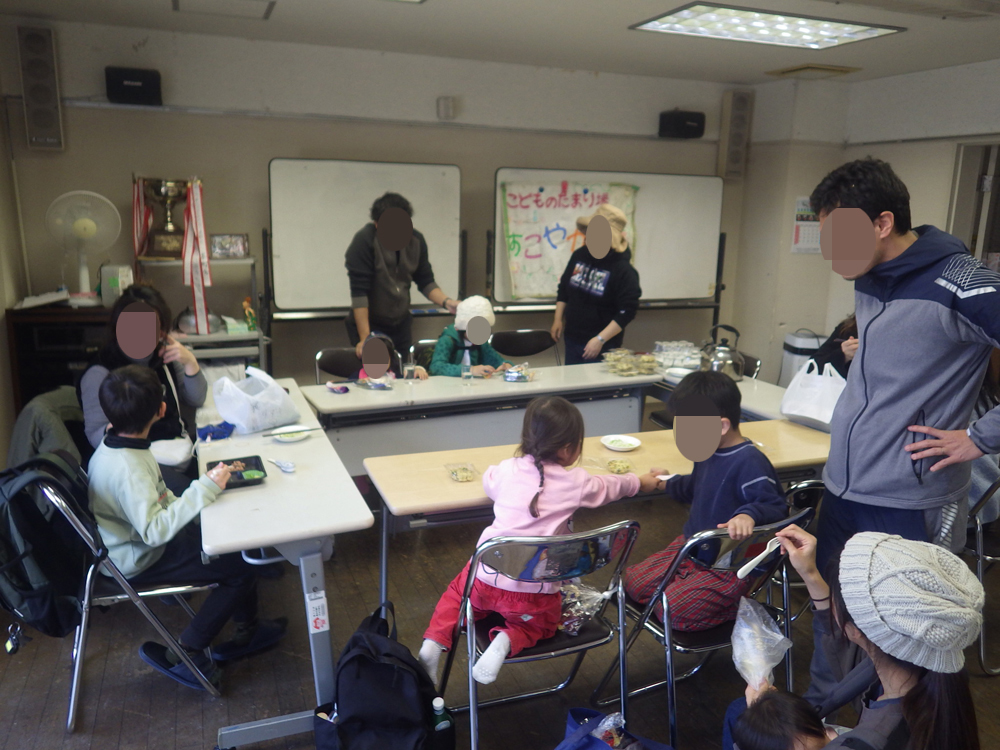 お蕎麦とお焼きはほとんどのご家族がその場で食べました。温かいお蕎麦は好評でした。
