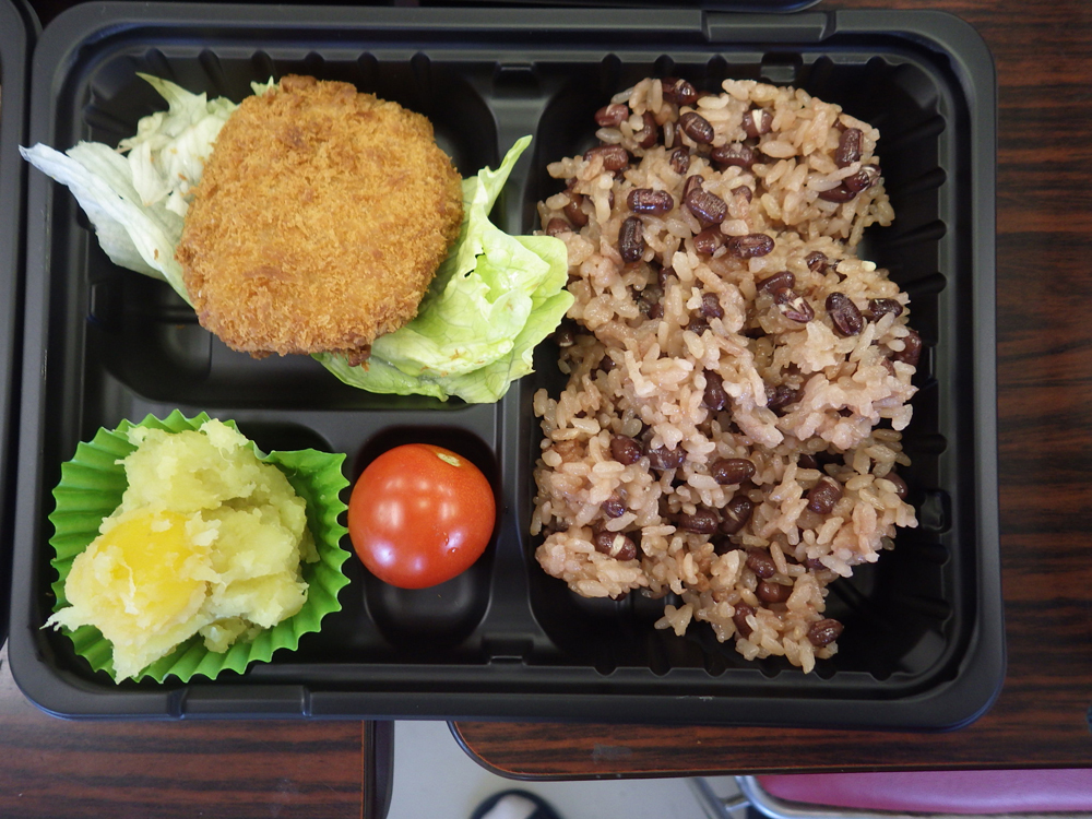 メニュー:小豆ごはん+チキンカツ⁺きんとん
