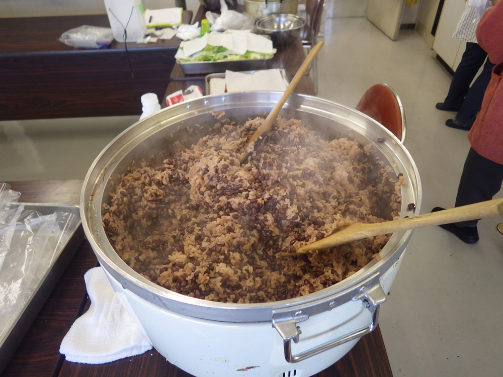 冬休みこども食堂応援わくわくギフトでいただいたお米で小豆ごはんを炊いて、パックご飯でライスお焼きを作りました。