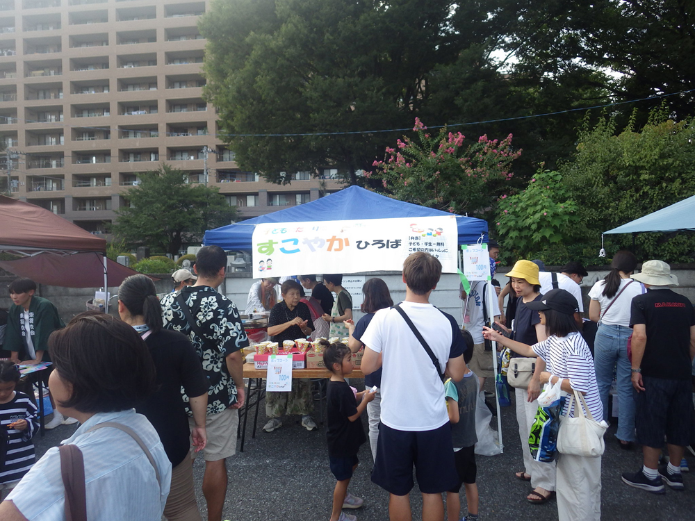 立川市錦町にある星槎学園で、「にしきキッズ夏祭り」があり、すこやかひろばも支援してくれている社会福祉協議会の地域コーディネータの方もいました。地域の子どもたちがたくさん来ていました。